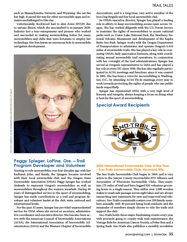Snowmobile Association (OSSA). Peggy Spieger has worked